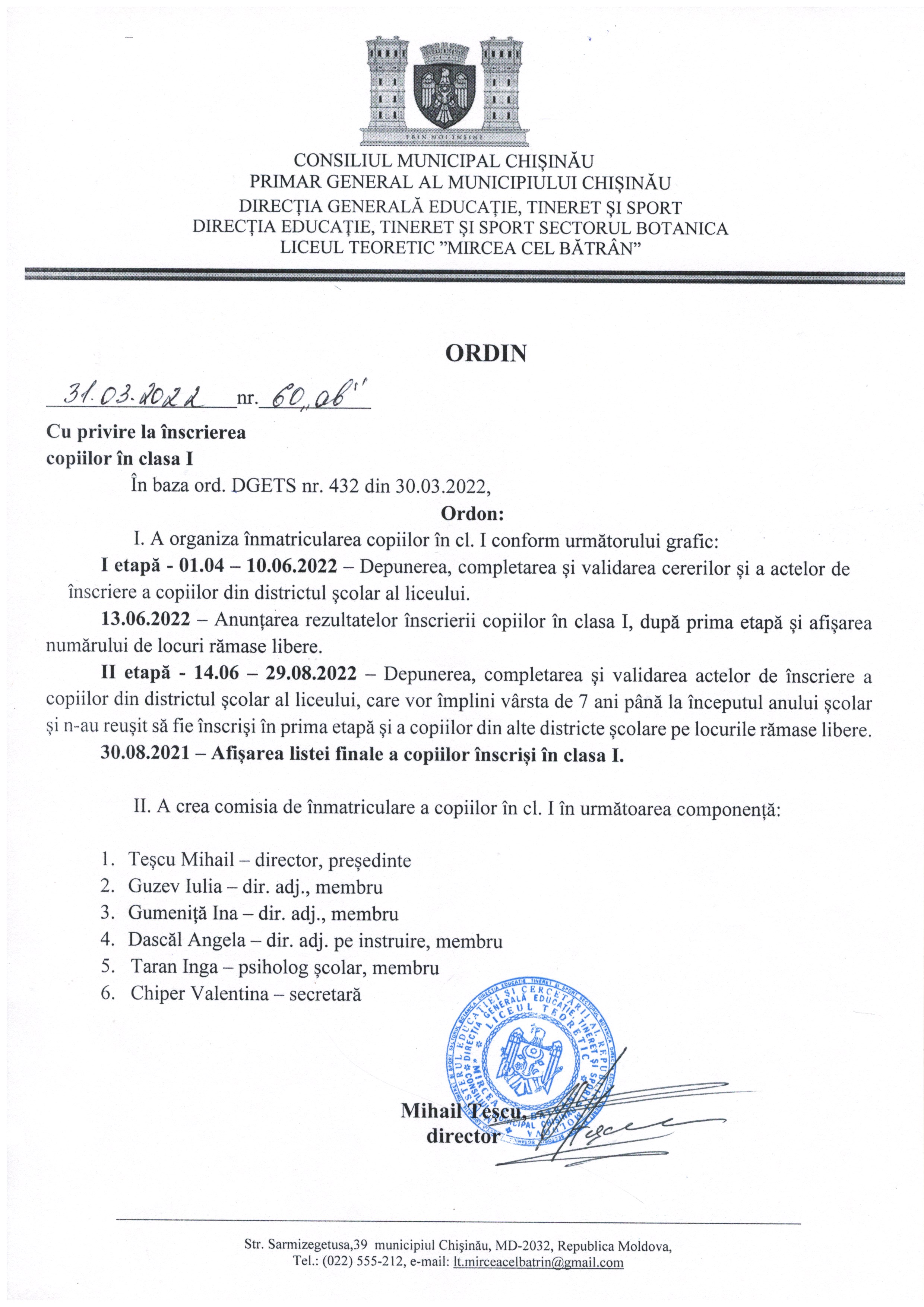 Dragi părinți așteptăm cu drag micii voștri școlari în liceul nostru, unde vor face cunoștință cu lumea mare a cărților.