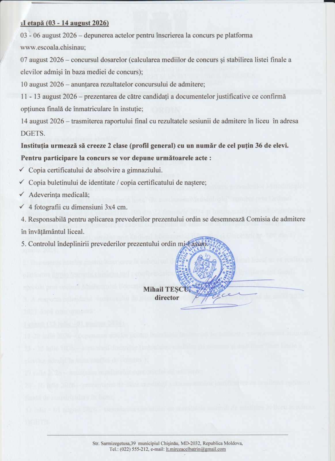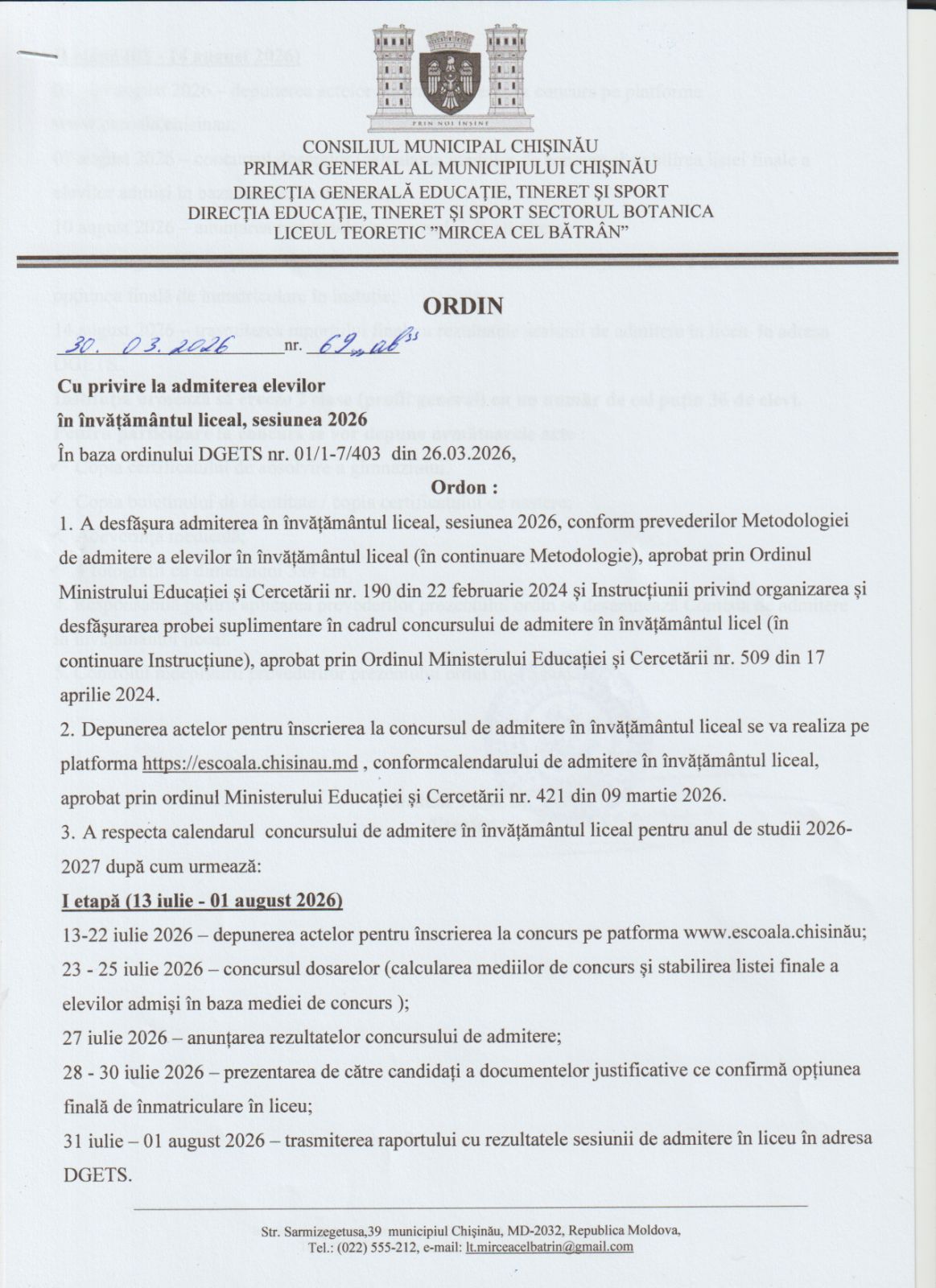 Dragi absolvenți ai treptei de gimnaziu, va invitam să depuneți cererile în instituția noastră pentru a fi partea a treptei de liceu.